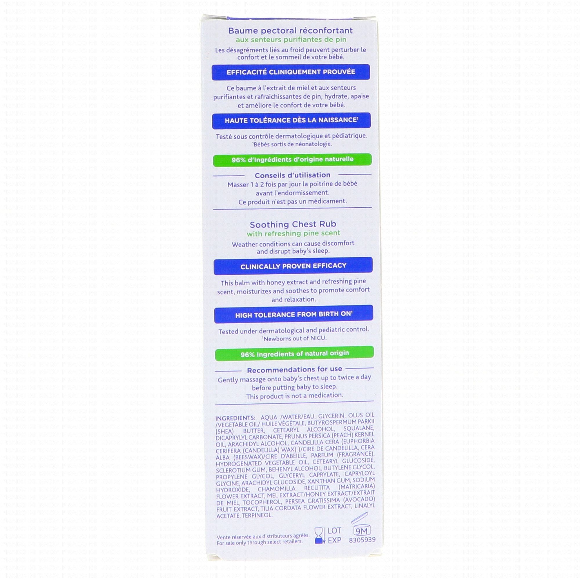 Baume pectoral. Soin bébé. Hydrate et apaise.