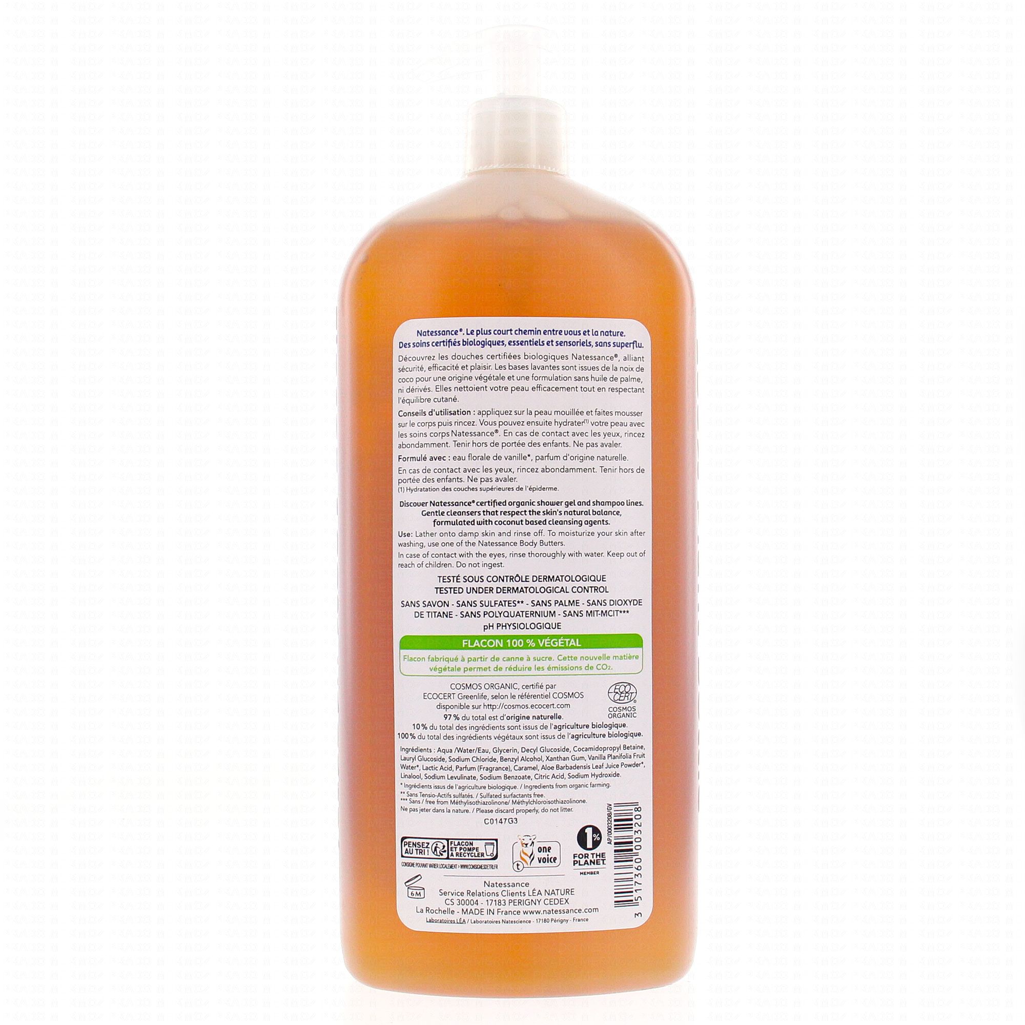 NATESSANCE Gel douche Vanille bio flacon 1L