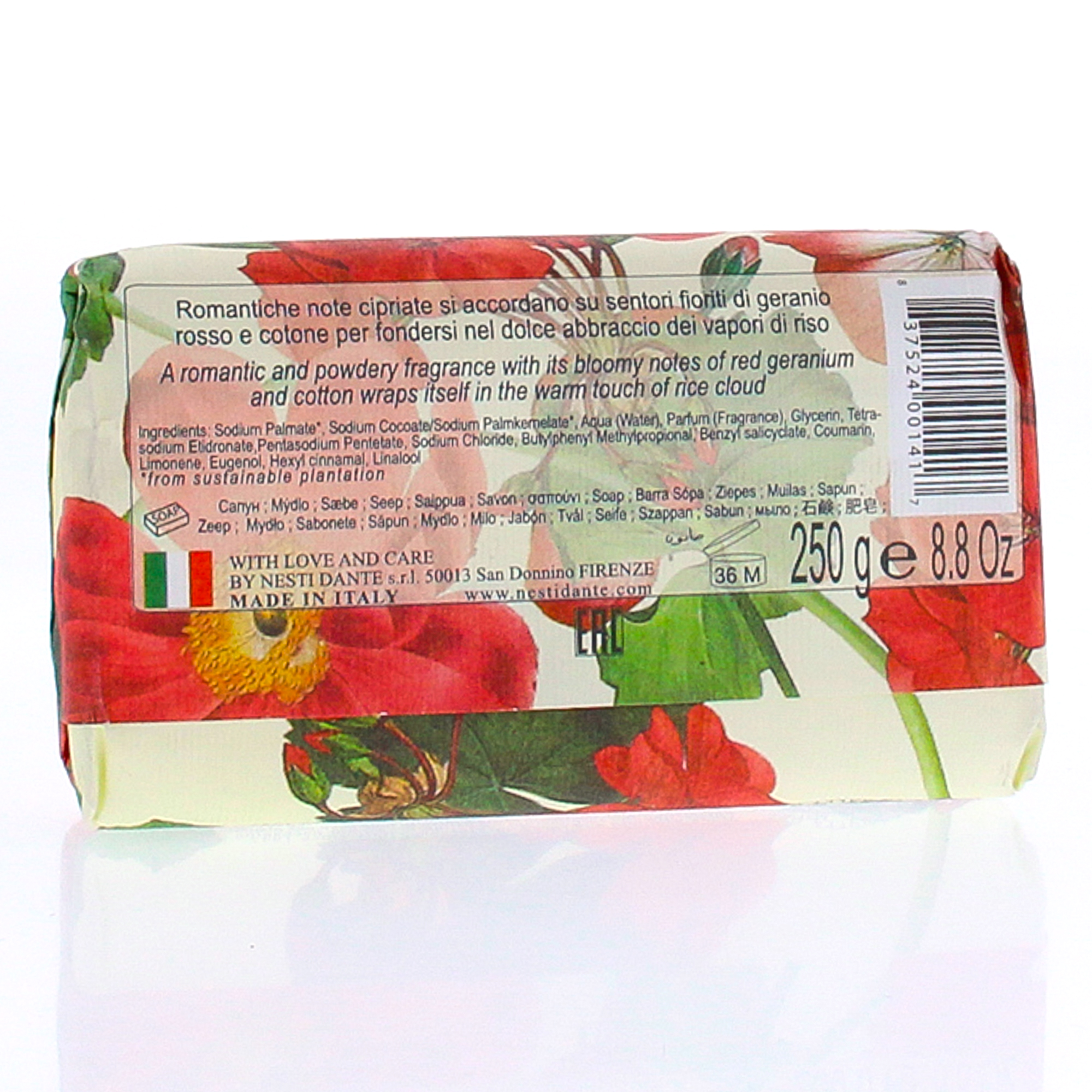 NESTI DANTE Dolce Vivere - Savon solide géranium rouge, nuage de riz, fleur de coton 250g