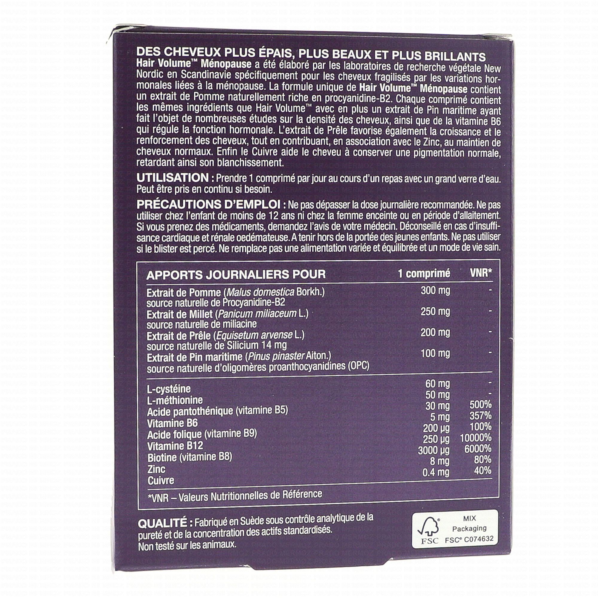 NEW NORDIC Hair Volume Ménopause x30 Comprimés contient les éléments suivants :
