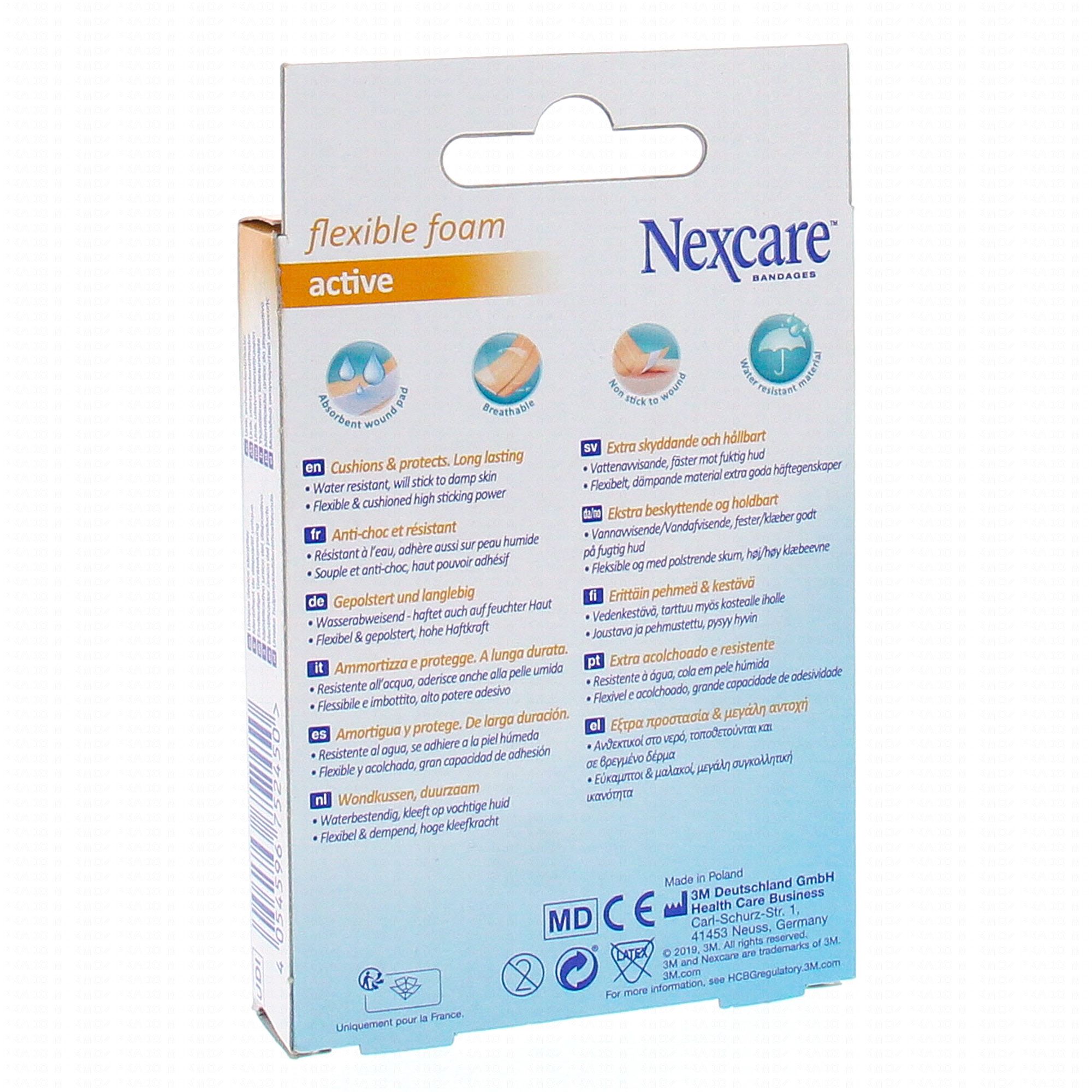 Conçus pour les personnes au mode de vie actif, les pansements en mousse Nexcare Active Flexible vous permettent de vous occuper de blessures mineures comme des éraflures, des coupures et des ampoules sans freiner votre rythme de vie. Une forme unique pour une meilleure étanchéité autour de la compresse.