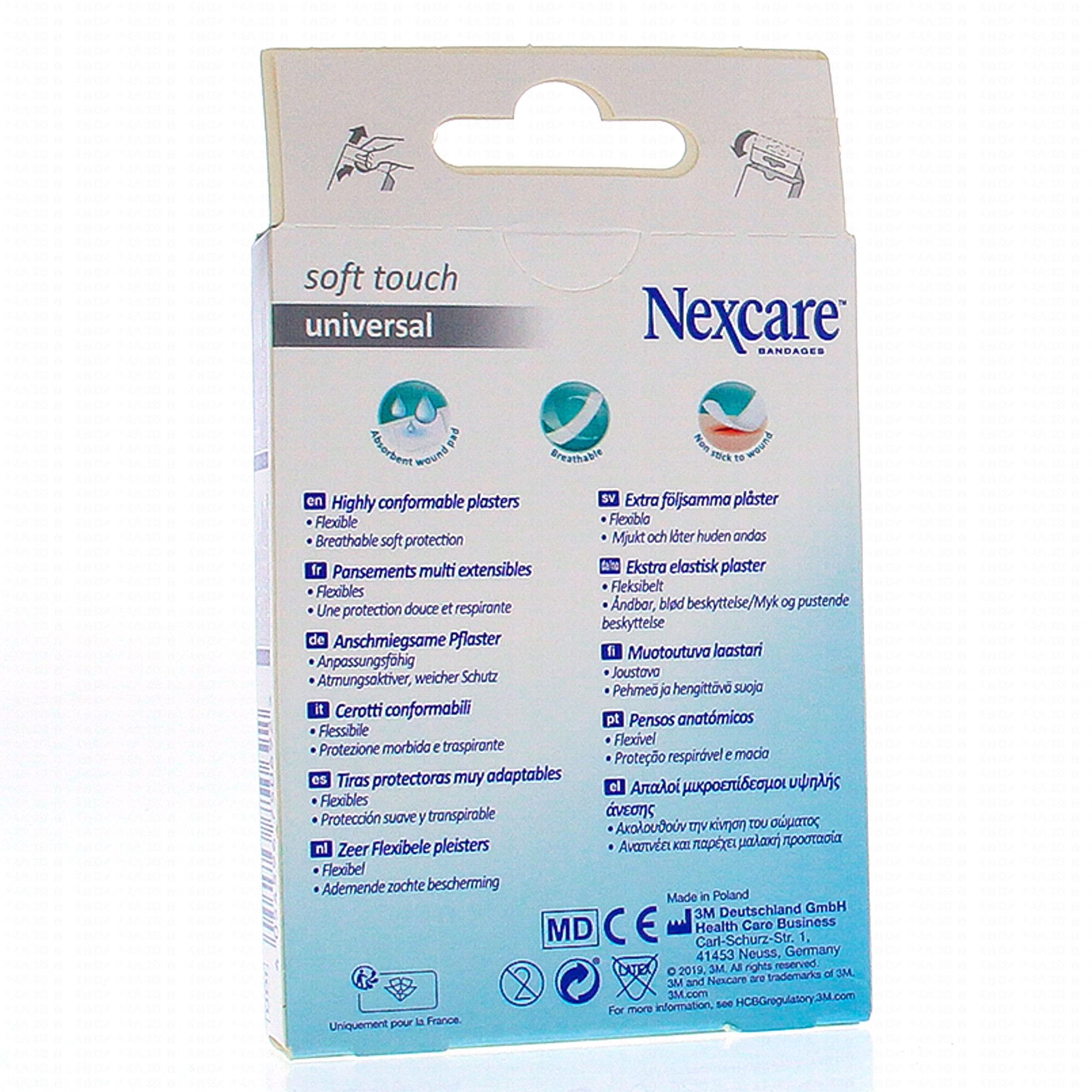 Les pansements doux universels Nexcare sont doux et conformes. Fait d'une matière délicate respirante avec une bonne adhérence à la peau. Protège les plaies mineures contre la contamination.