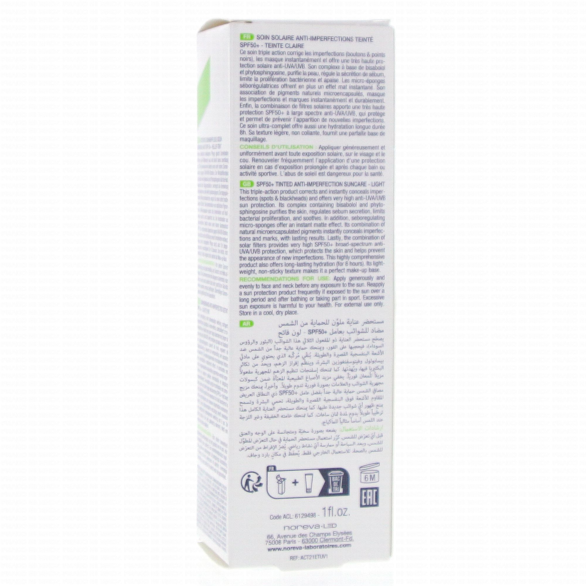 NOREVA Actipur SPF50+ Soin solaire anti imperfections teinté Tube 30ml