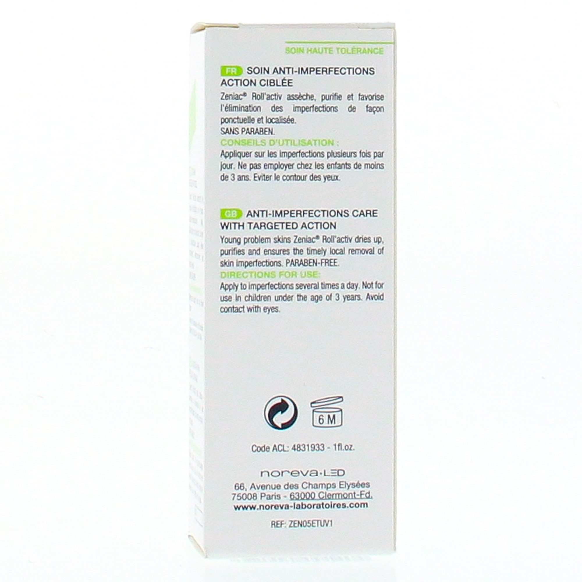 Le soin ciblé Zeniac Roll'Activ élimine les imperfections cutanées en asséchant et en purifiant les zones à traiter. Lotion Roll'Activ asséchante et purifiante, favorise l'élimination des imperfections cutanées. Non comédogène. Conditionnement : roll'on, étui carton.