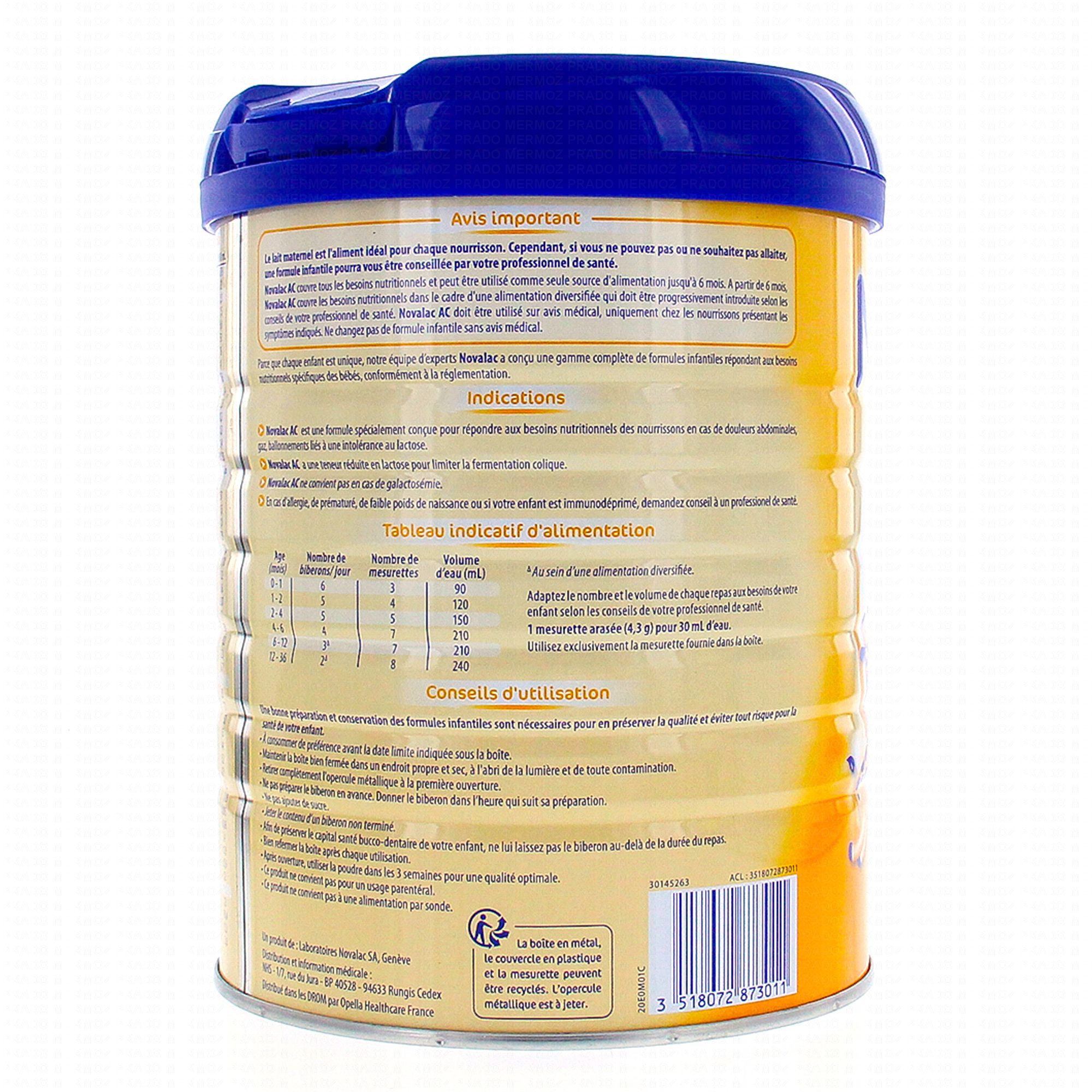 NOVALAC AC Lait 0-36 mois 800g contient les éléments suivants :