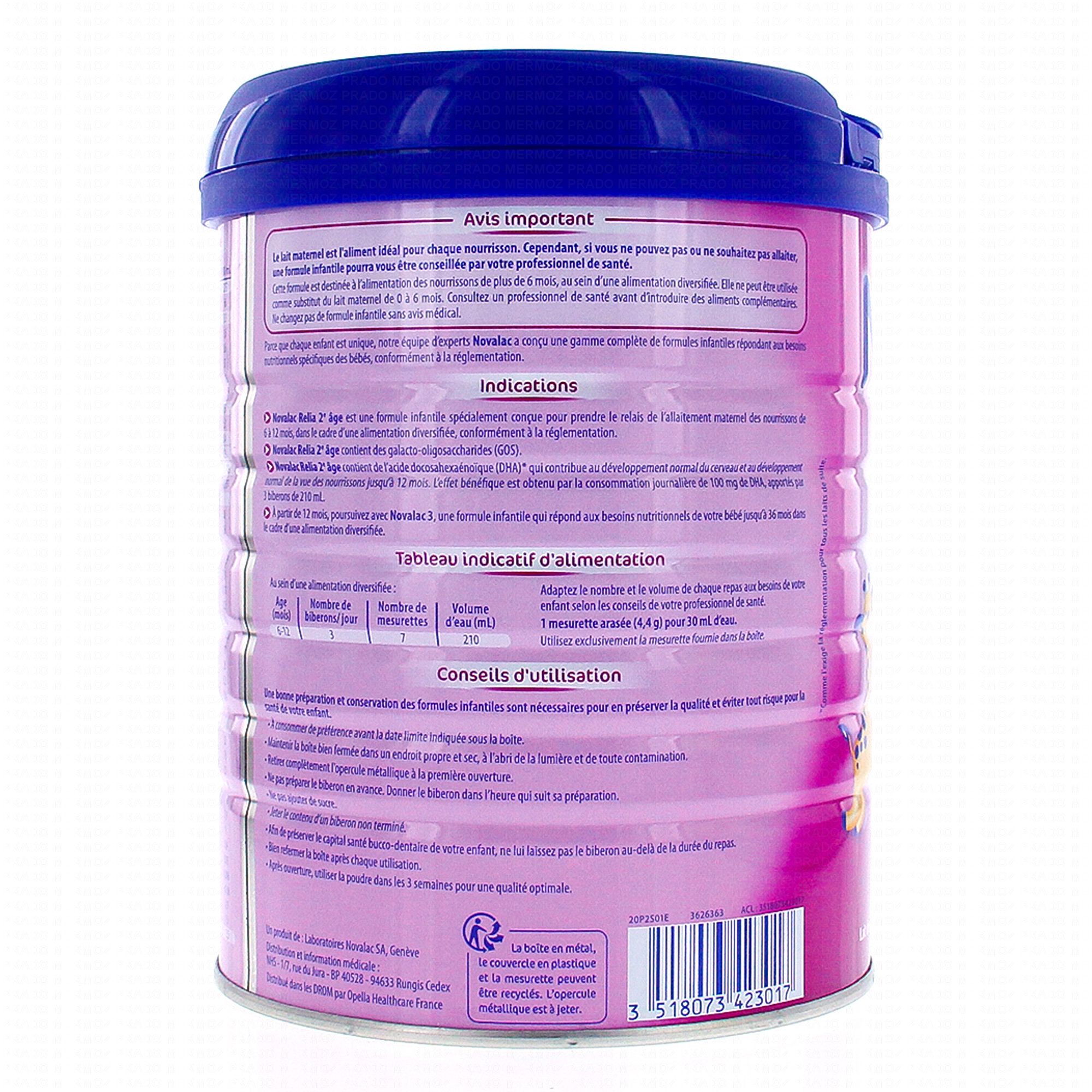 NOVALAC Lait de suite Relia 2ème âge 800g contient les éléments suivants :