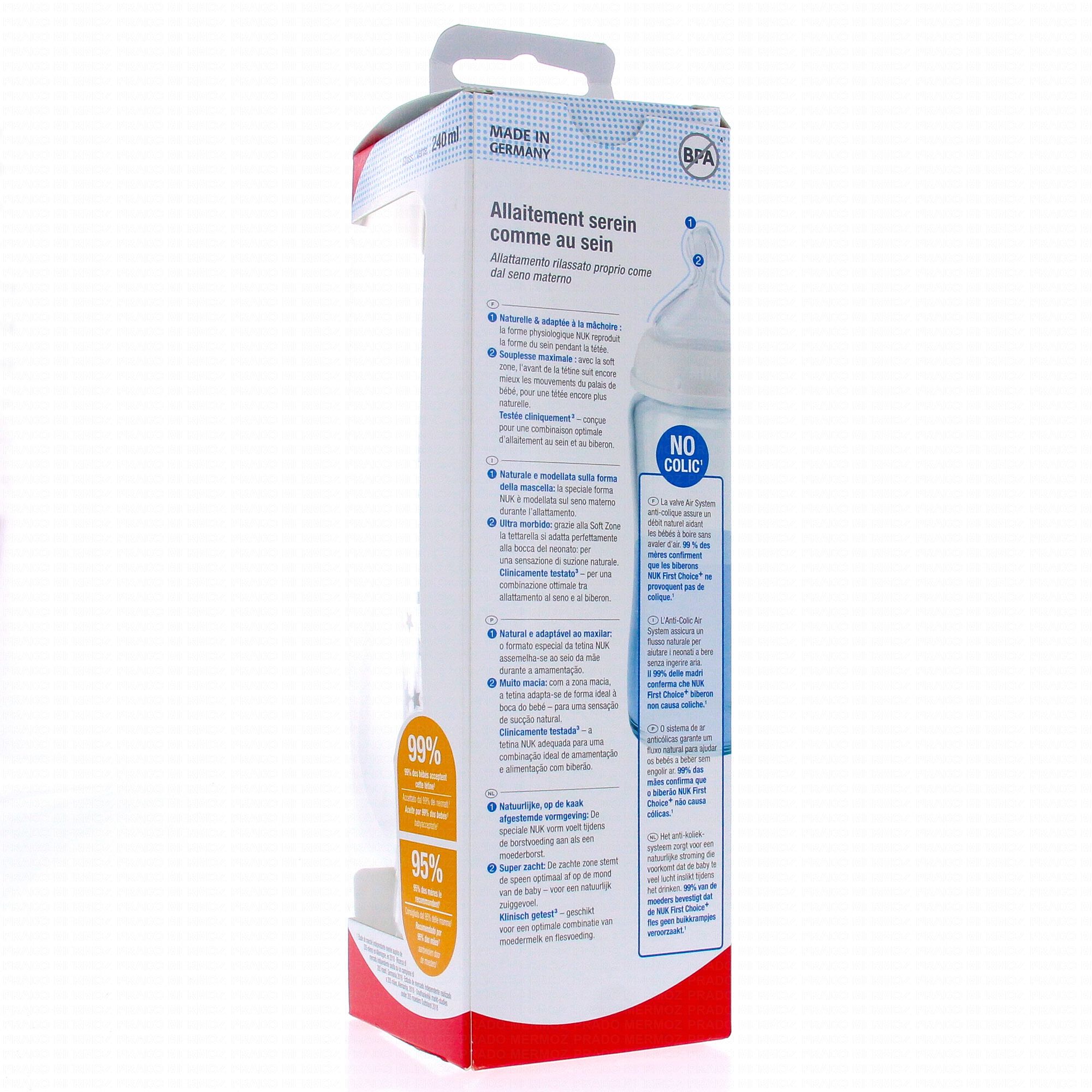 NUK First Choice - Biberon 1er âge 0-6mois 240ml blanc feuilles