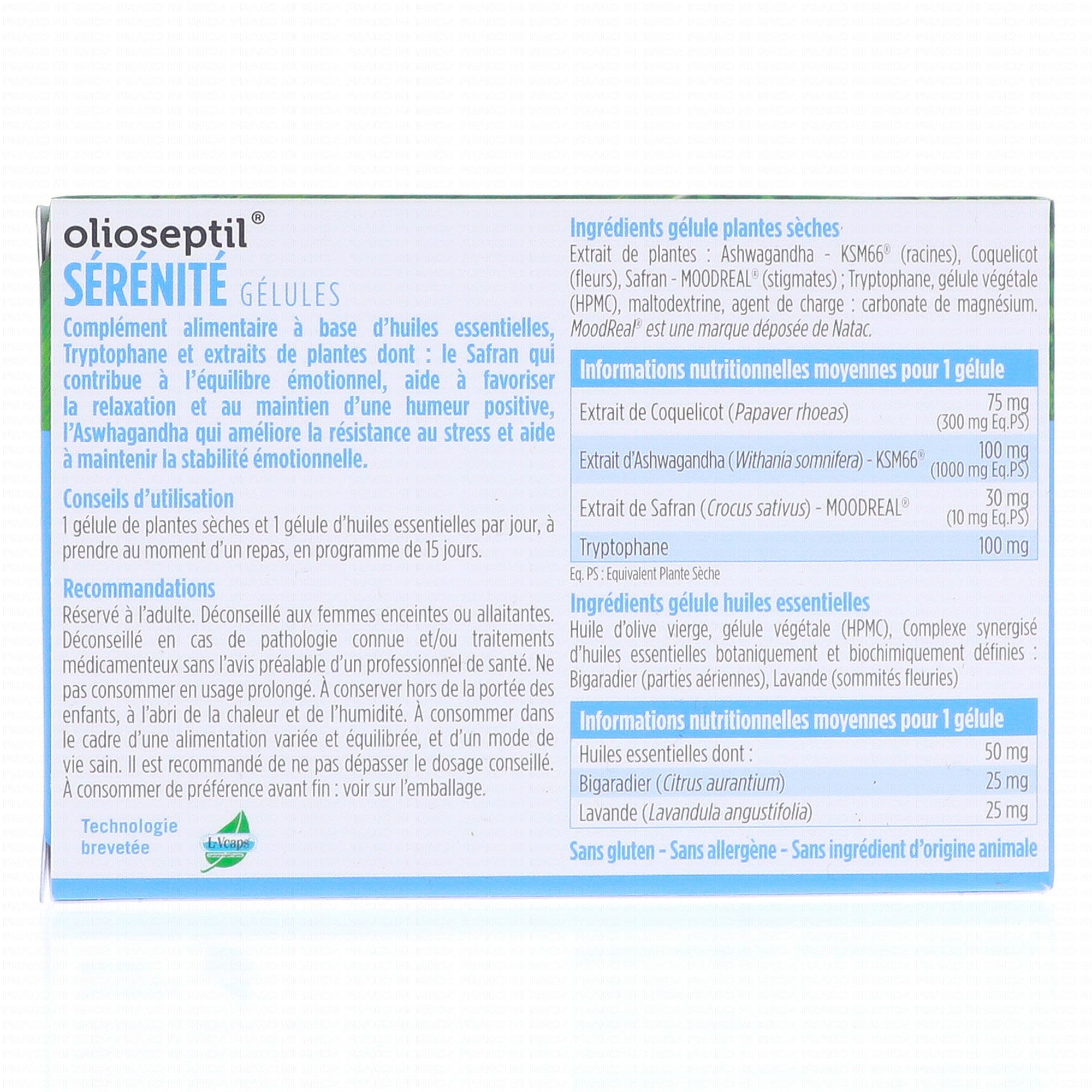 OLIOSEPTIL Sérénite x30 gélules contient les éléments suivants :