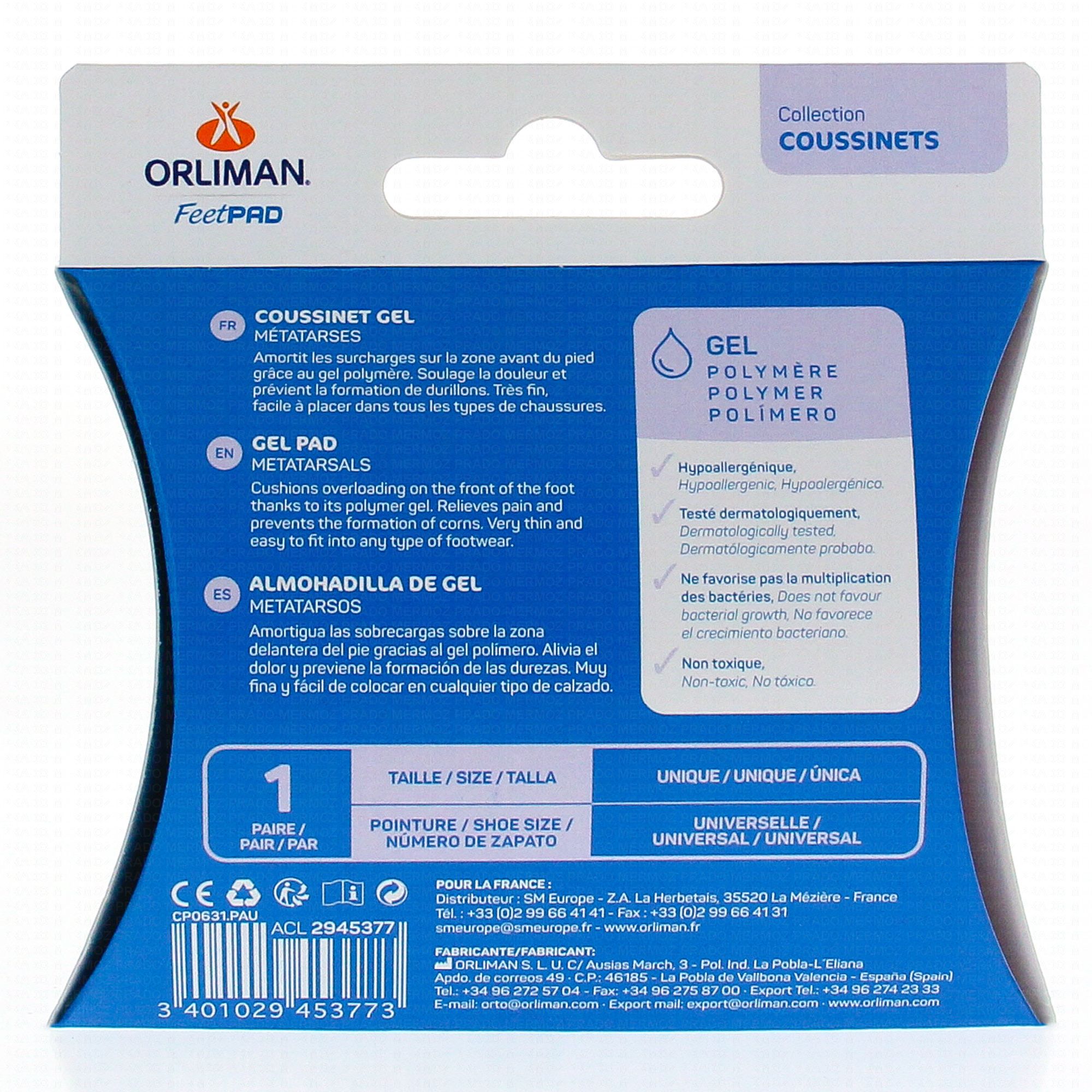 ORLIMAN Feetpad - Coussinet gel métatarses 1 paire taille unique taille unique