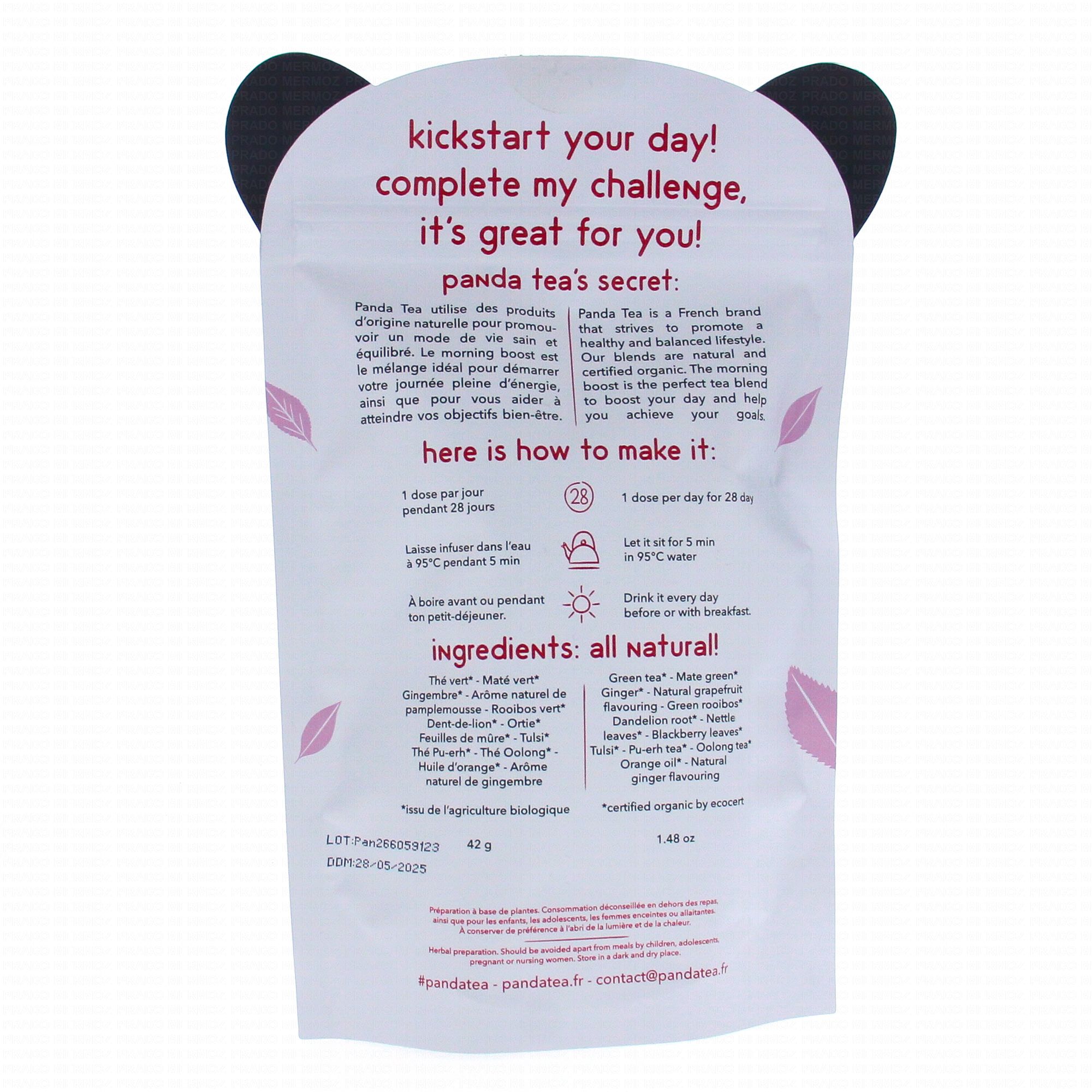 PANDA TEA Morning Boost 28 Day Detox 28 sachets est une préparation riche en anti-oxydants grâce à la présence de Thé vert et de Maté.