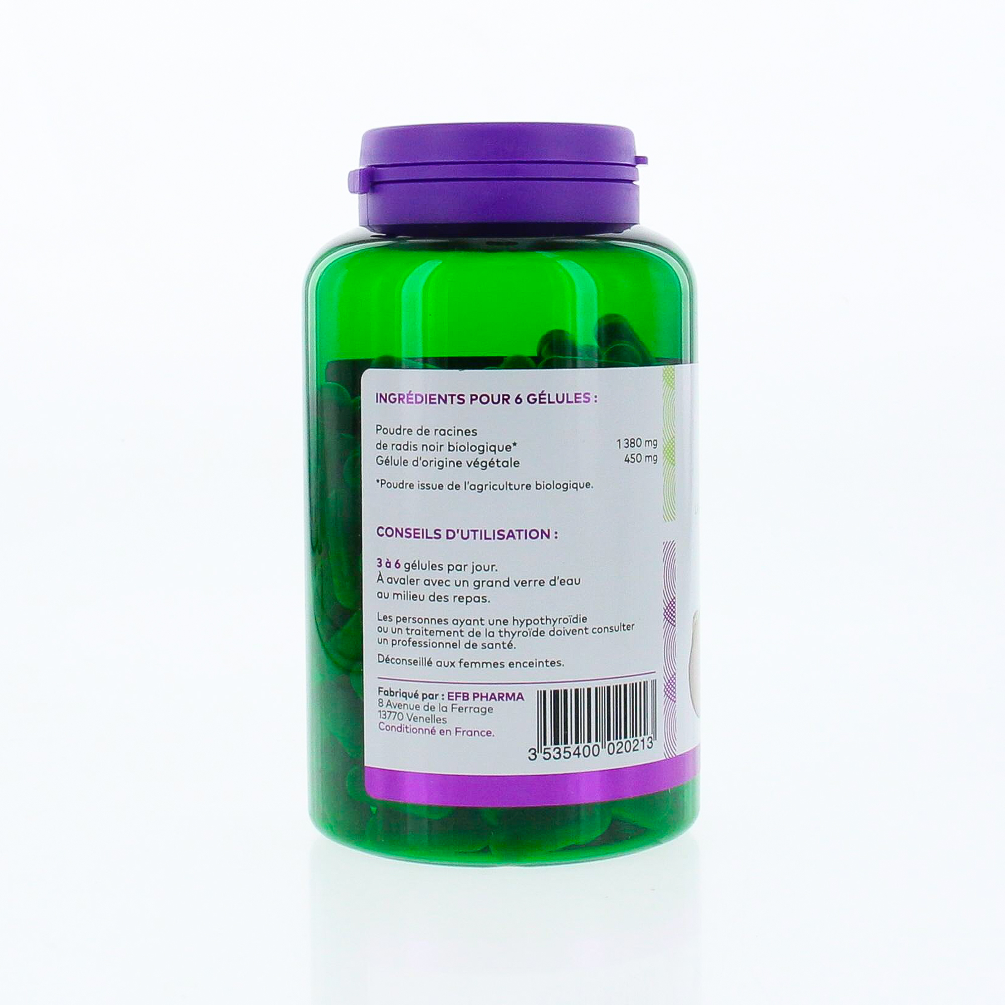 PHARMASCIENCE Radis Noir Bio 200 gélules contient les éléments suivants :