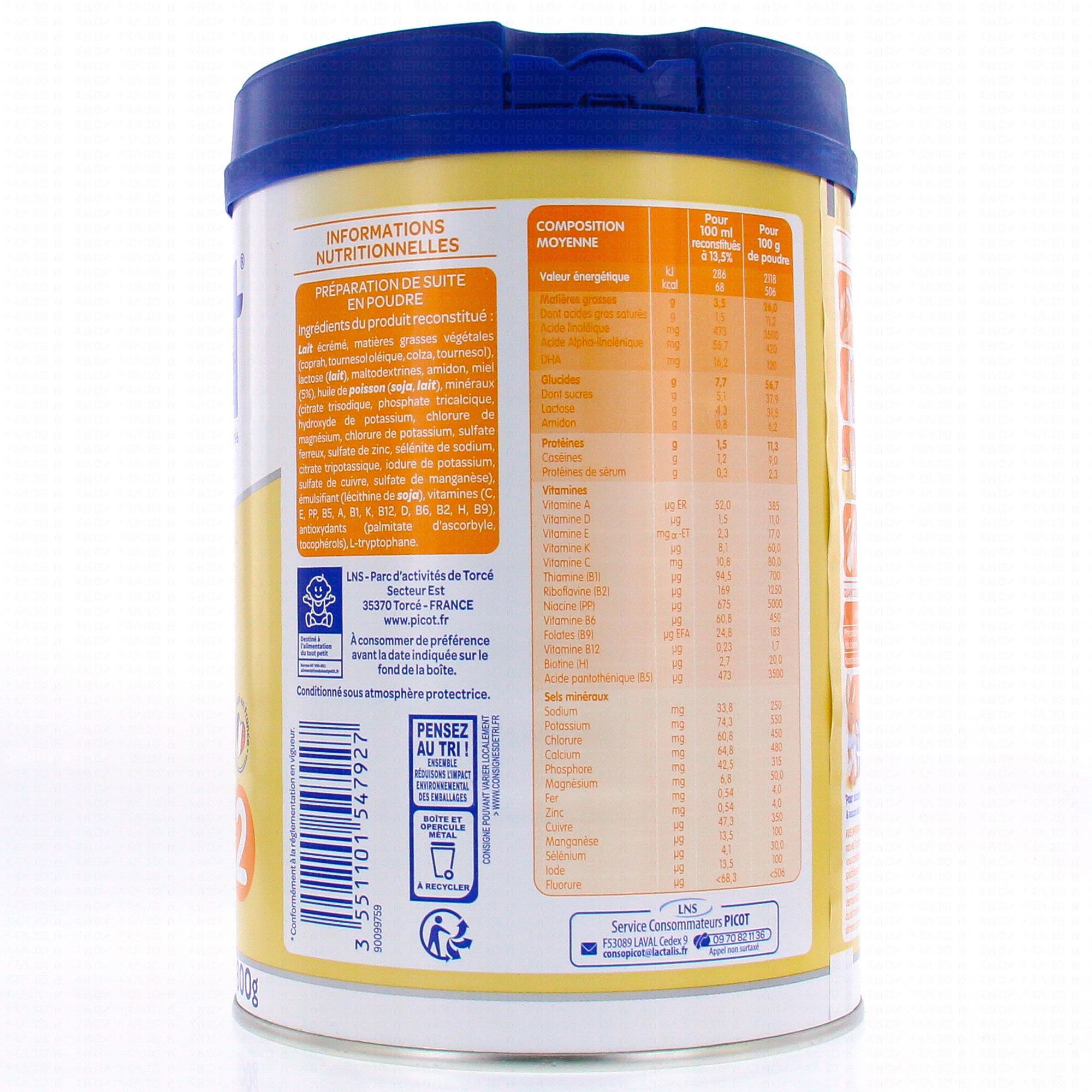 PICOT Expert lait bébé gourmand 2ème age 6-12 mois 800g contient les éléments suivants :
