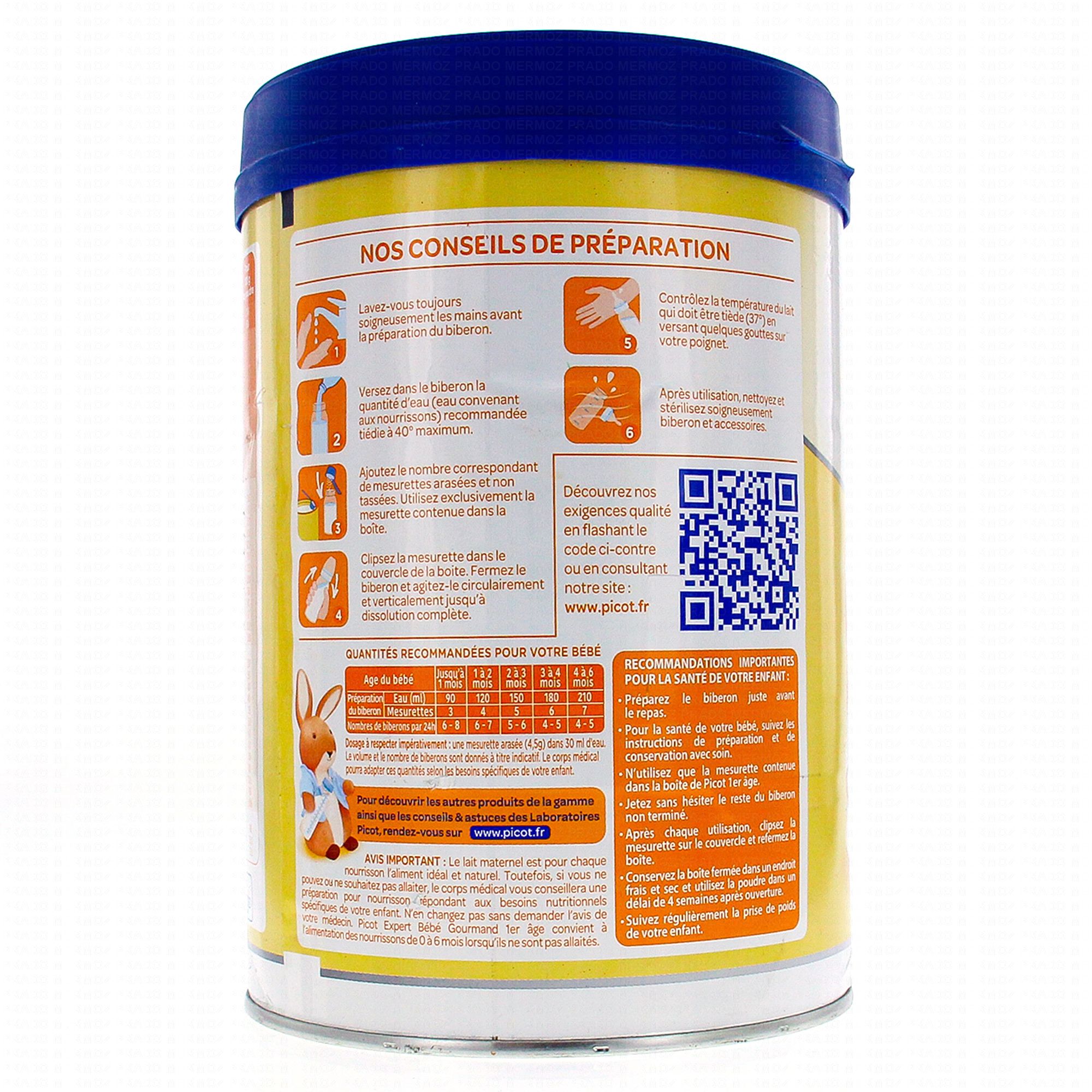 PICOT Lait bébé gourmand 1er âge 800g contient les éléments suivants :