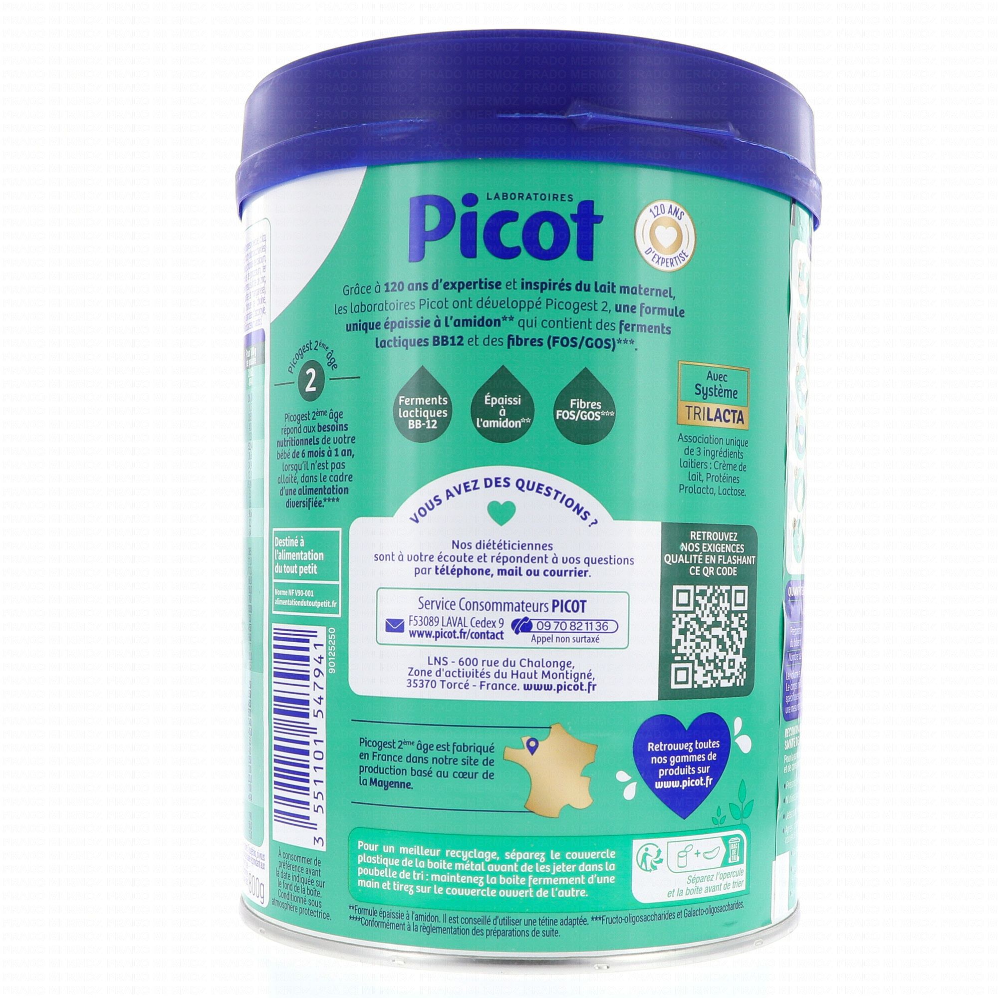 PICOT Picogest Lait 2ème âge 800g contient les éléments suivants :