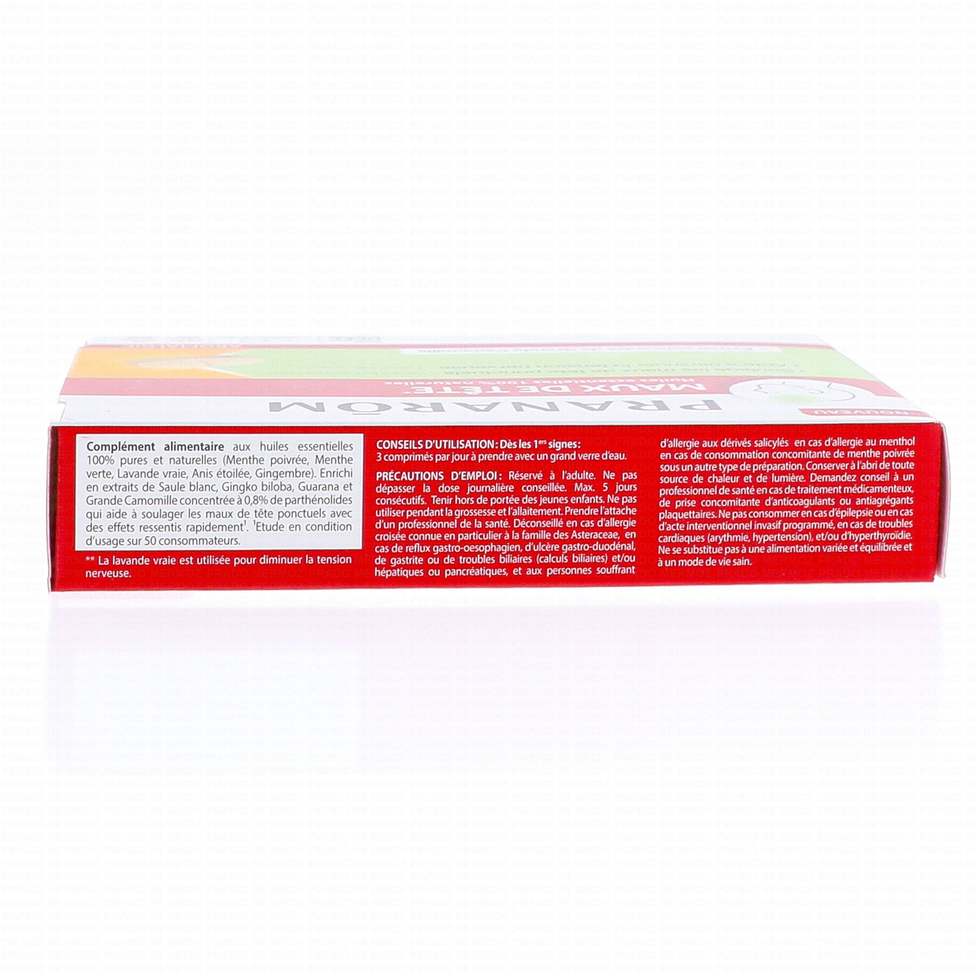 PRANAROM Aromalgic Maux de tête 8 comprimés contient les éléments suivants :