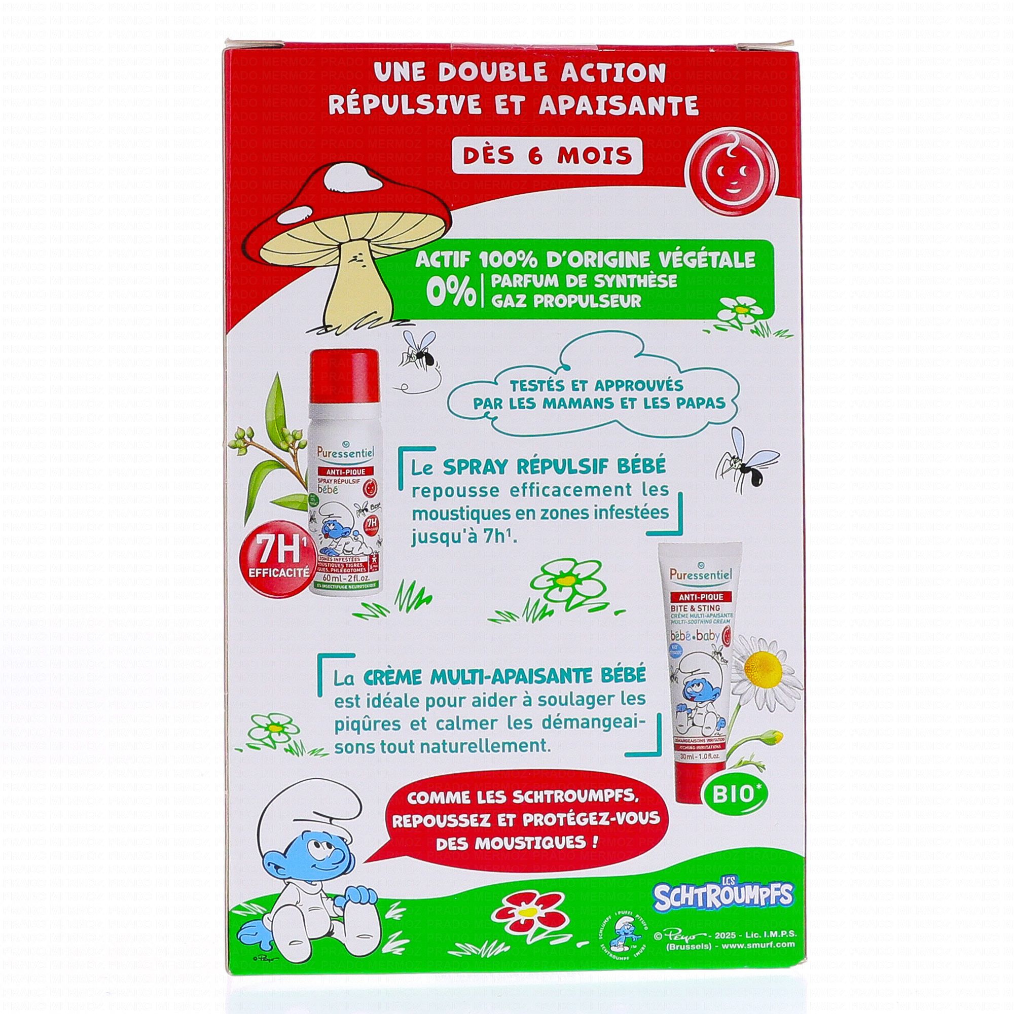 PURESSENTIEL Anti-Pique Bébé - Kit Spray Répulsif 60ml et Crème Apaisante 30ml