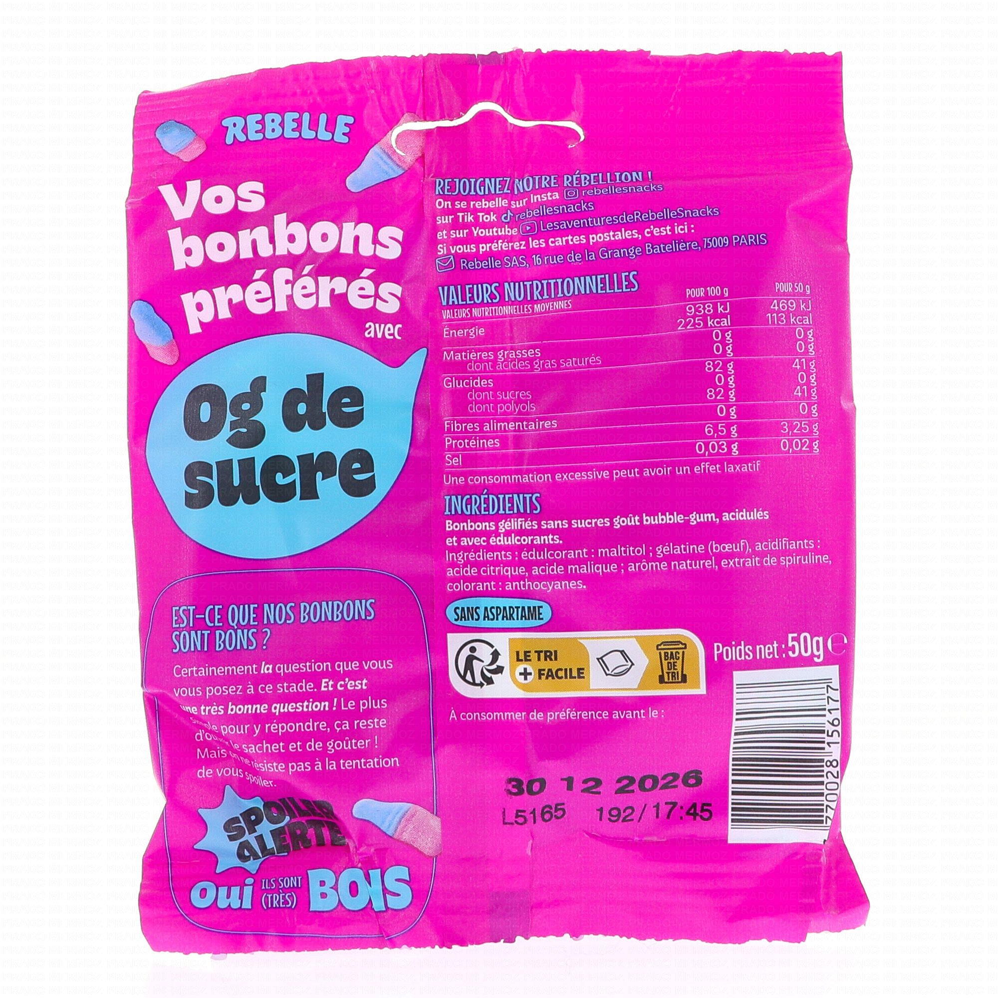 Les bonbons Rebelle sont des bonbons aux arômes naturels, sans sucres, au goût bubble gum, végan et fabriqué en France.