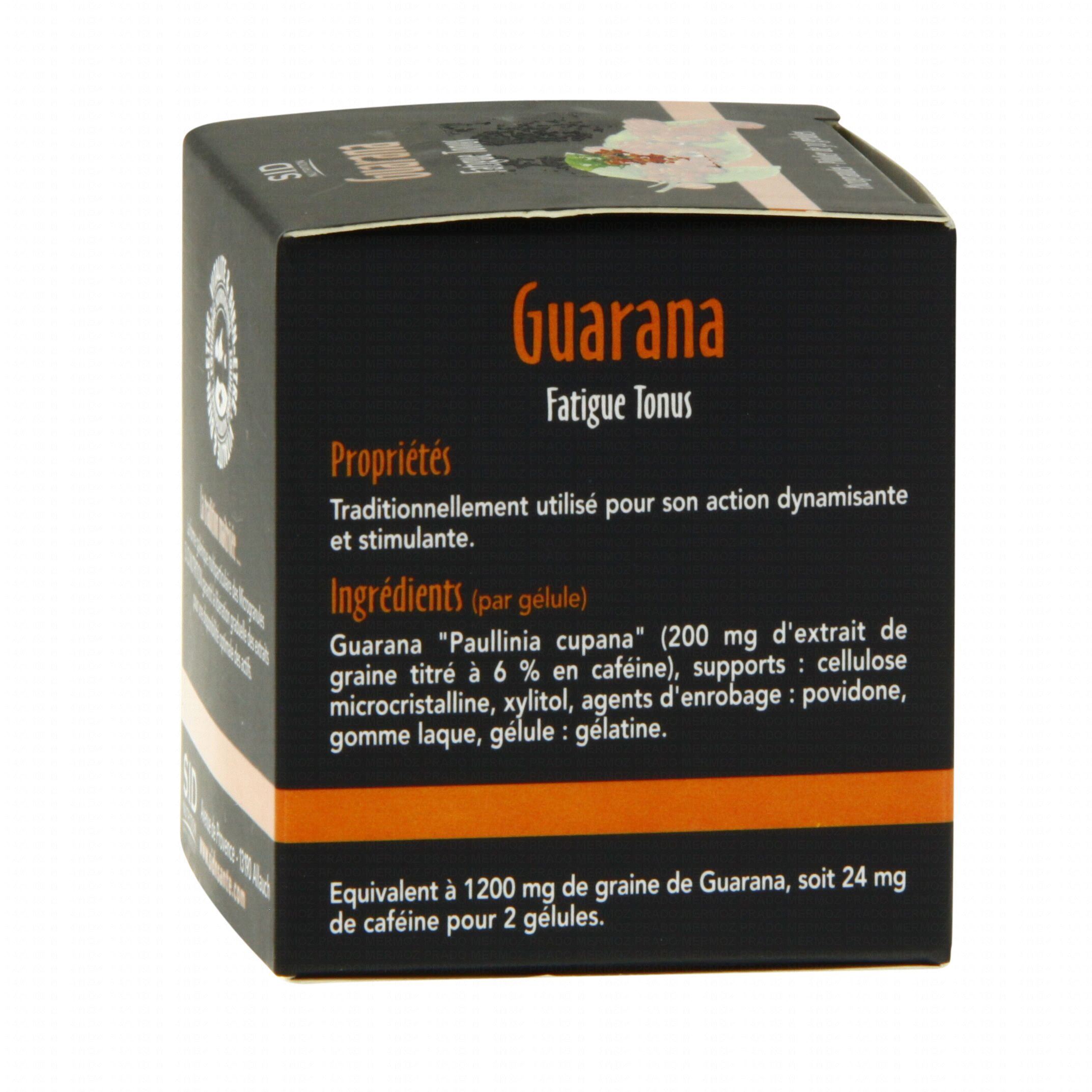 Guarana 'Paullinia cupana' (200 mg d'extrait de graine titré à 6 % en caféine).