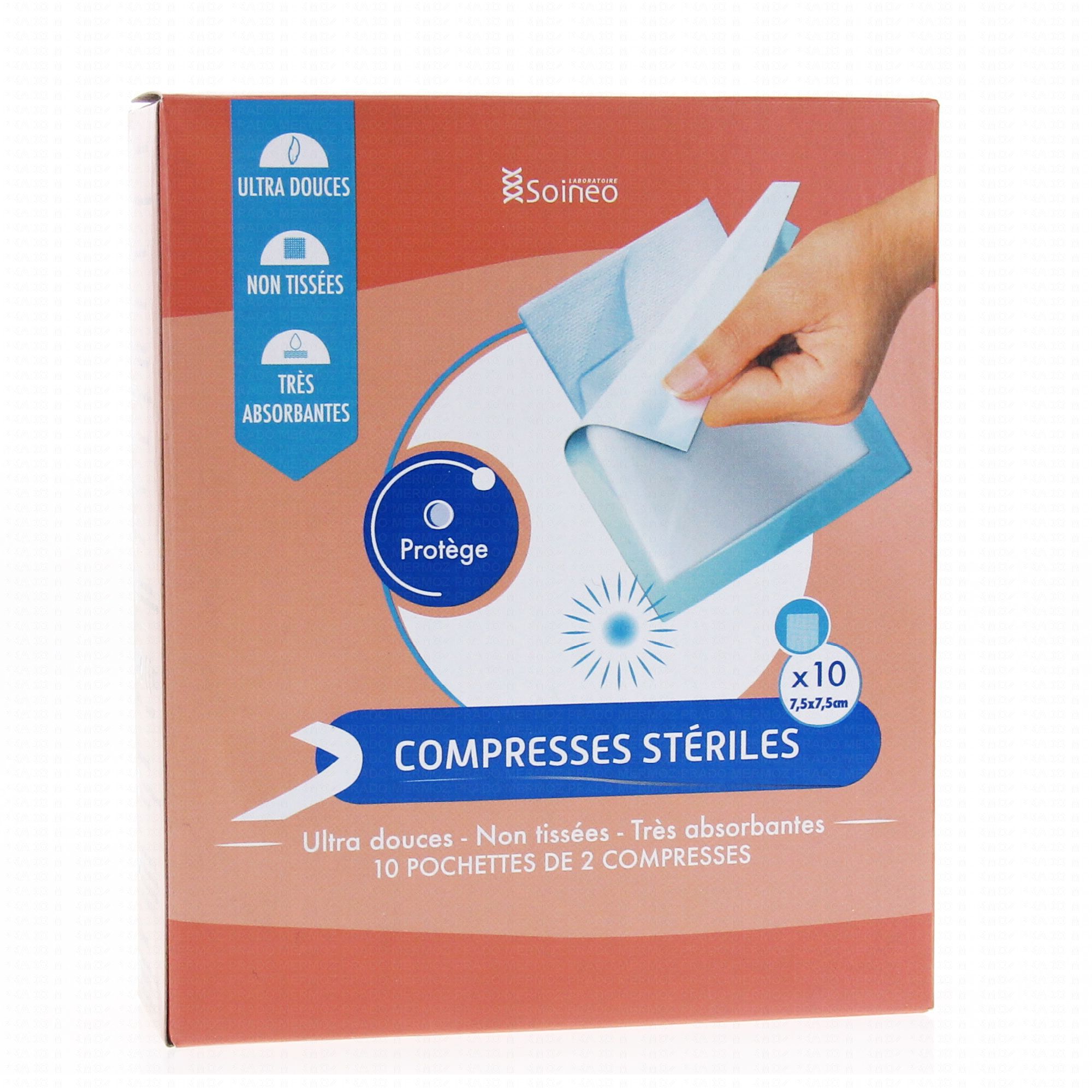 Compresses stériles ultra douce, non tissé, très absorbantes 10 pochettes de 2 compresses stériles