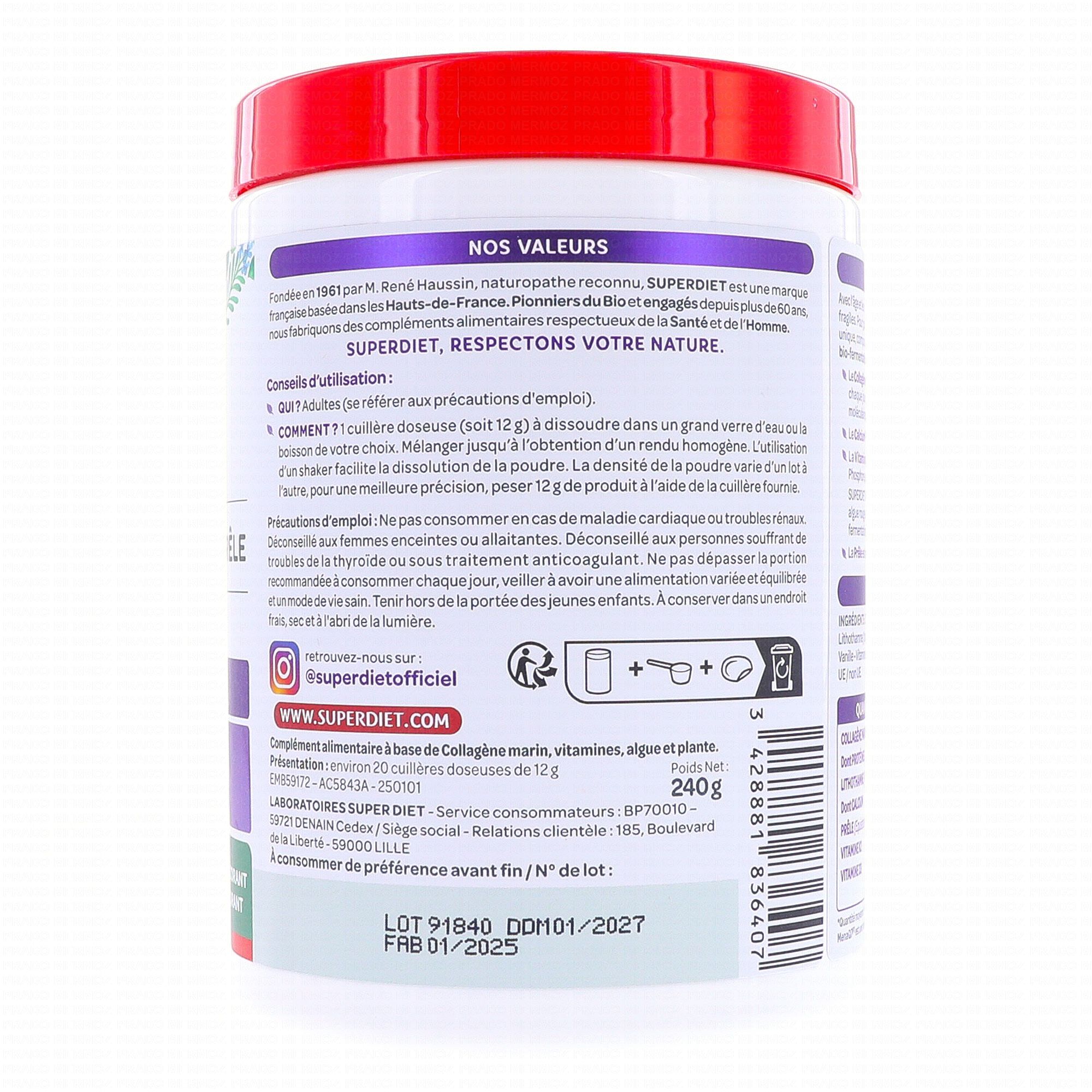 SUPERDIET Collagène Marin 10g + Calcium, Vitamines D3, K2, Prêle 240g