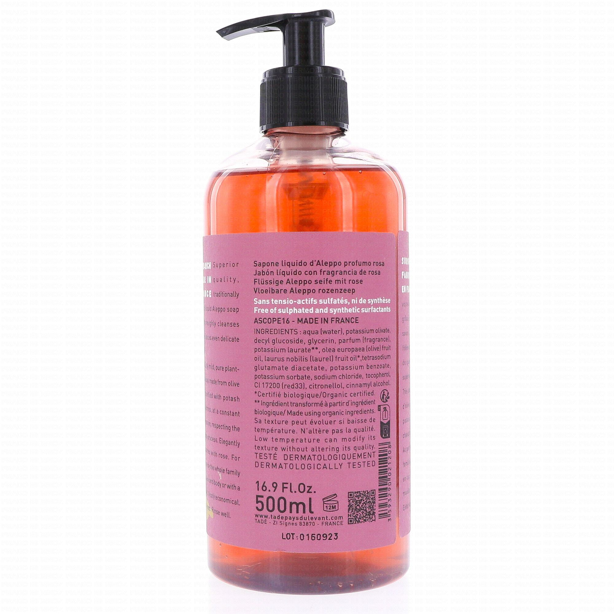 Le savon liquide d'alep nettoie et parfume la peau délicatement grâce à sa fabrication artisanale fidèle au procédé aleppin, de qualité cosmétique supérieure. Ultra doux, à base d'huile d'olive saponifiée par la potasse à l'ancienne au chaudron, en discontinu il hydrate les peaux sèches de toute la famille et y laisse un doux parfum de fleur de rose.