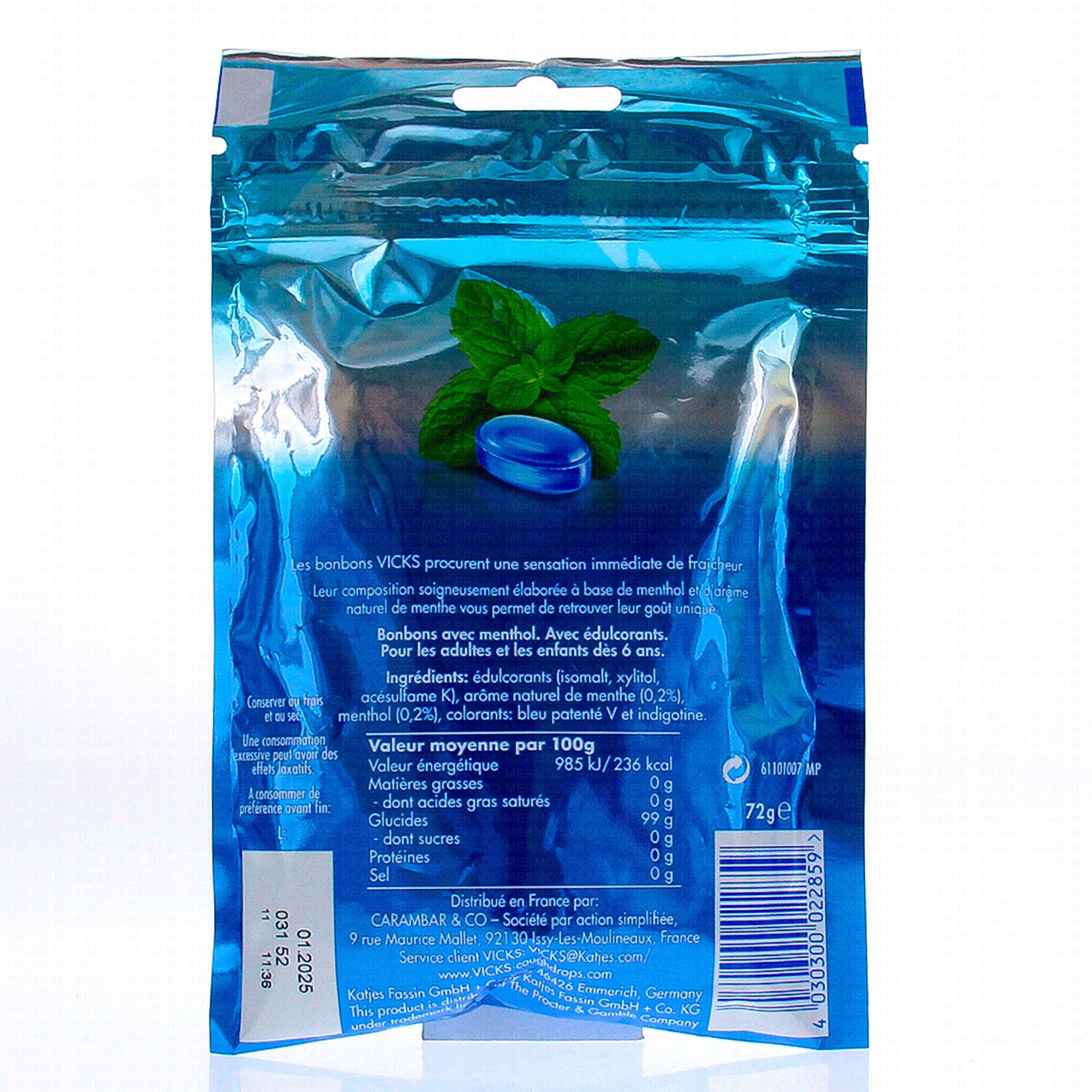 Les bonbons Vicks au menthol sont sans sucres et vous procurent une sensation immédiate de fraicheur en bouche très agréable.