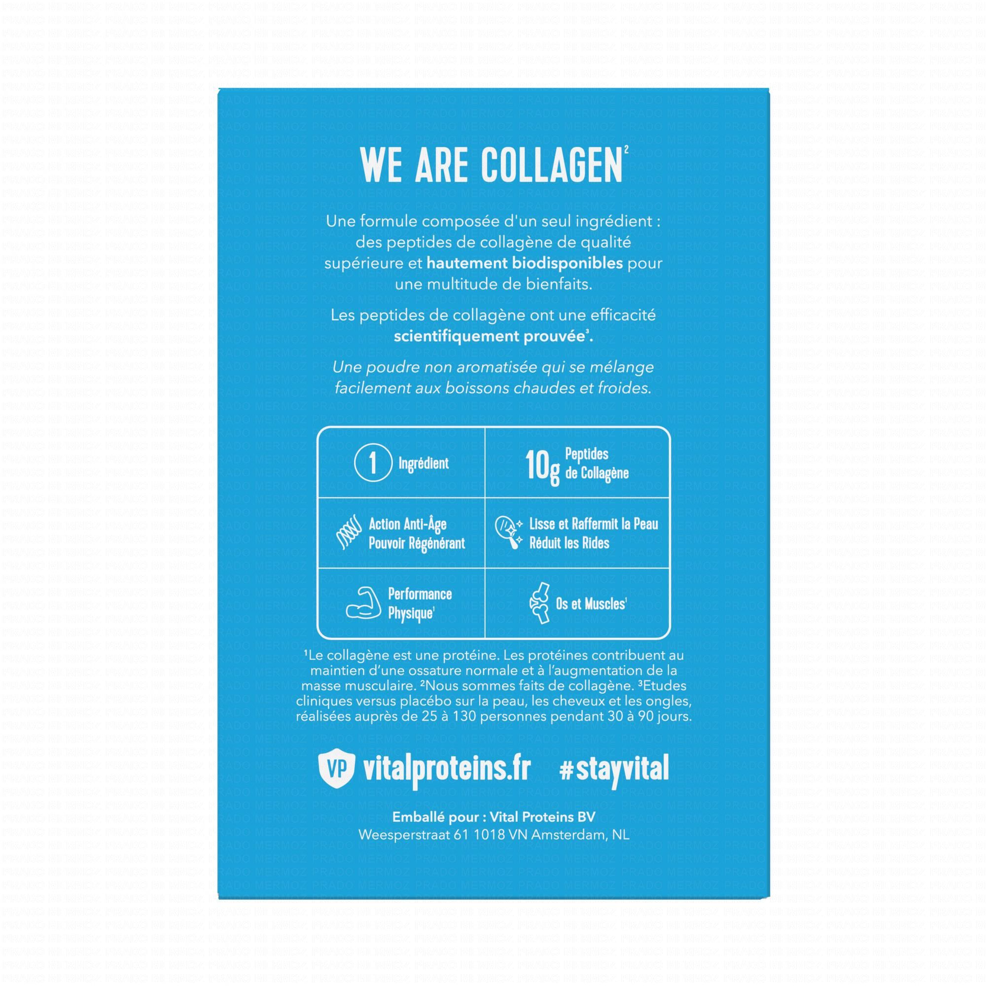 VITAL PROTEINS Collagen Peptides est une poudre concentrée de peptides de collagène. Hautement assimilable, elle contribue à l'approvisionnement en collagène de votre corps.