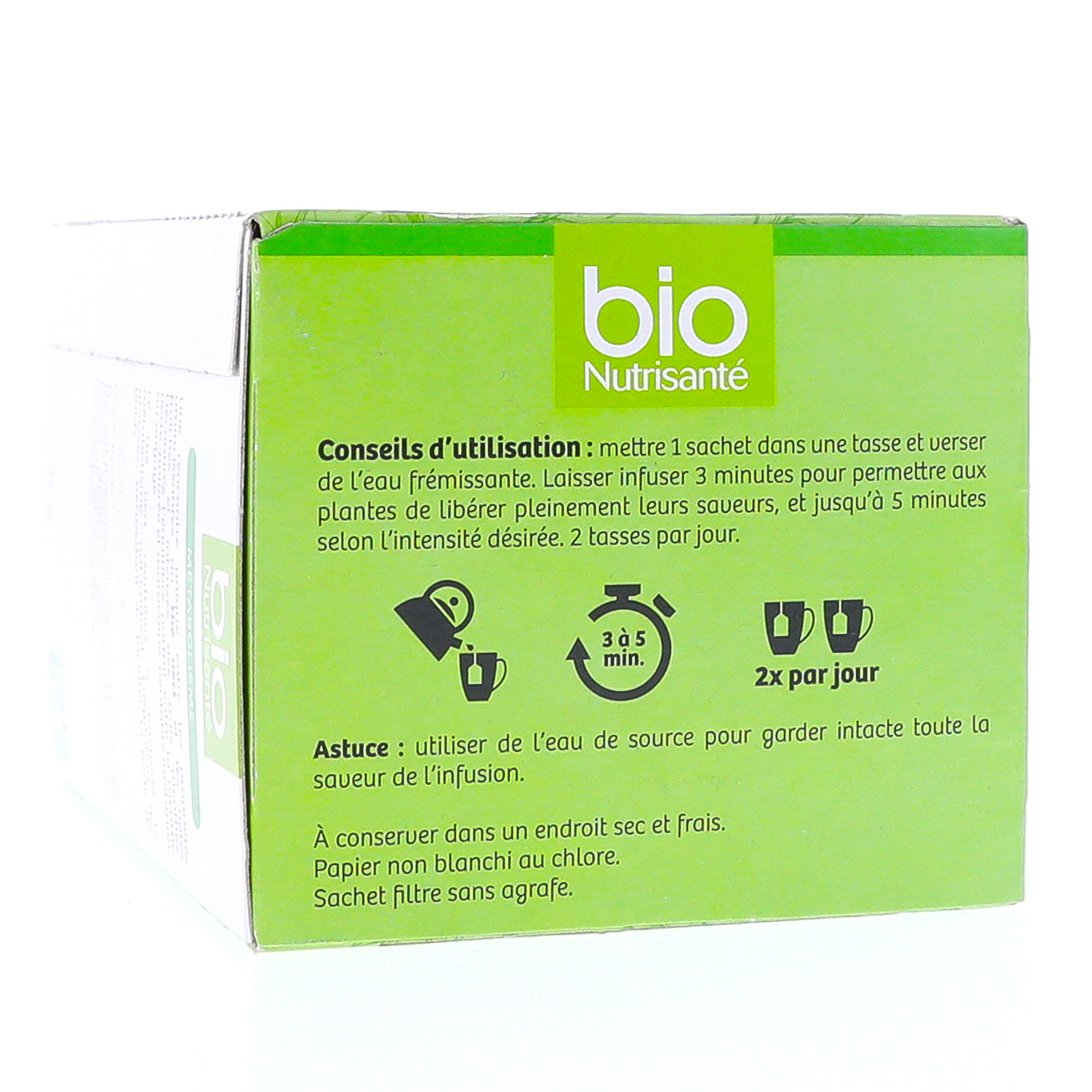 NUTRISANTÉ Infusion bio thé vert à la menthe 20 sachets contient les éléments suivants :