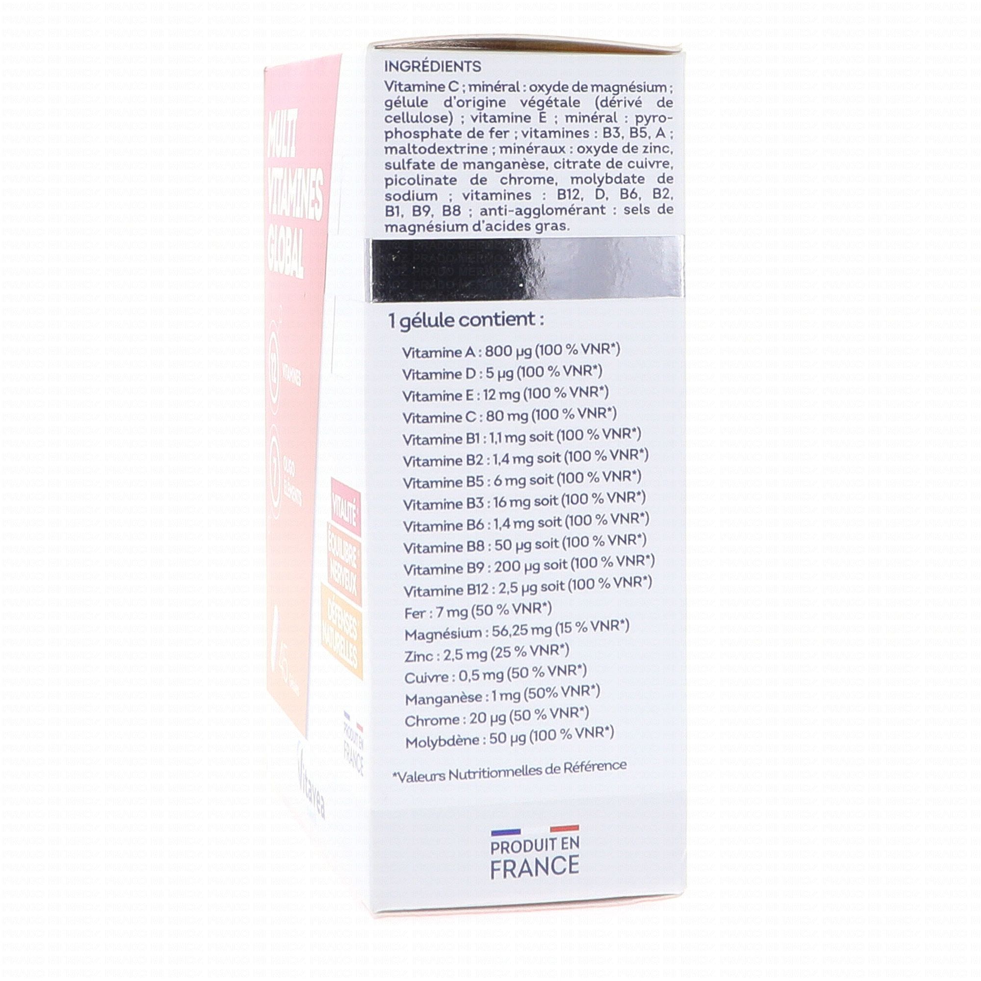 VITAVEA Multi Vitamines Global 45 gélules contient les éléments suivants :