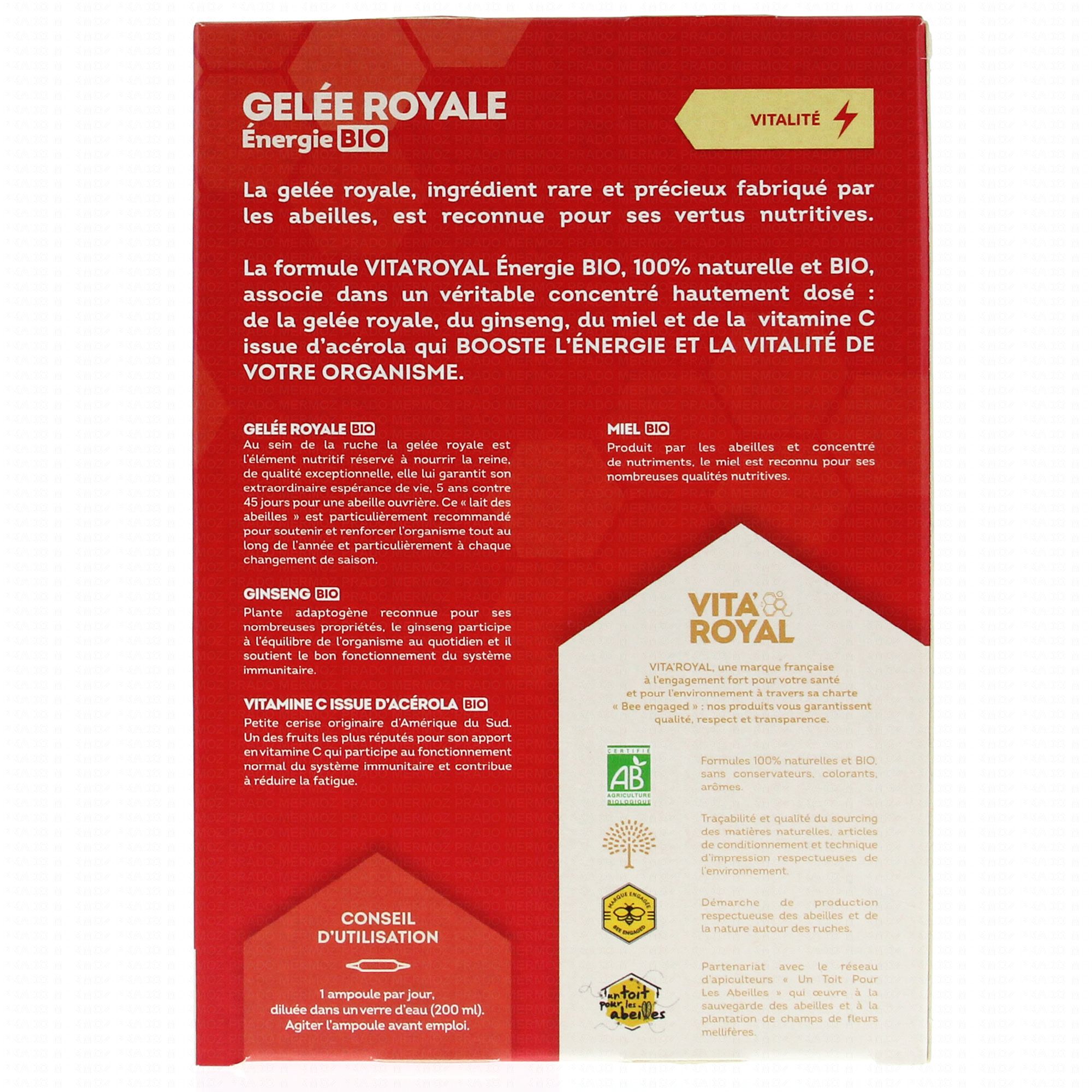 VITAVEA Vita'Royal Gelée Royale Energie Bio 10 ampoules contient les éléments suivants :